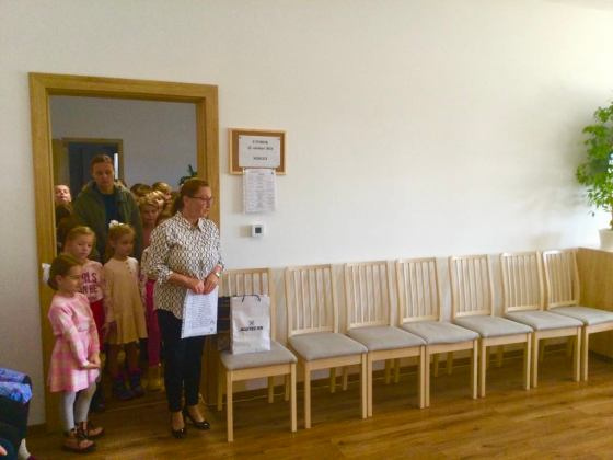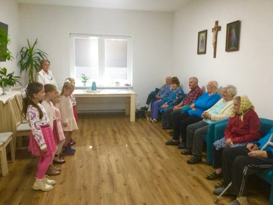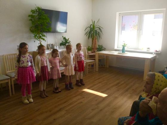 Ďalšou akciou v mesiaci októbri dňa 25. 10. 2024 v piatok dopoludnia, prišli potešiť našich klientov aj deti z materskej škôlky, Krompachy-Slovinky. Pani riaditeľka Mgr. Darina Tomašovová so svojimi učiteľkami a deťmi, ktoré boli vyparádené v detských folklórnych krojoch, pripravili pre našich klientov krásny program. Počas programu boli naši klienti obdarovaní veľkým červeným srdcom z papiera. Vo svojom tanečnom programe deti z materskej škôlky vyzvali aj niektorých našich klientov do tanca. Bolo krásne sledovať radosť, ktorú svojim milým gestom spôsobili. Po skončení vystúpenia sme pre deti pripravili malé občerstvenie, taniere boli prázdne, ani ich nebolo potrebné umývať ???? ????. Ďakujeme za krásne strávené dopoludnie a veríme, že prídu ešte potešiť našich klientov a navštívia naše zariadenie.